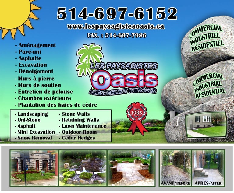 Les Paysagistes Oasis is a family-based landscaping service that has been transforming outdoor spaces since 1962. We specialize in garden design, lawn care, and outdoor living spaces, and our team of experts is dedicated to creating beautiful and functional outdoor spaces that complement your property and lifestyle.